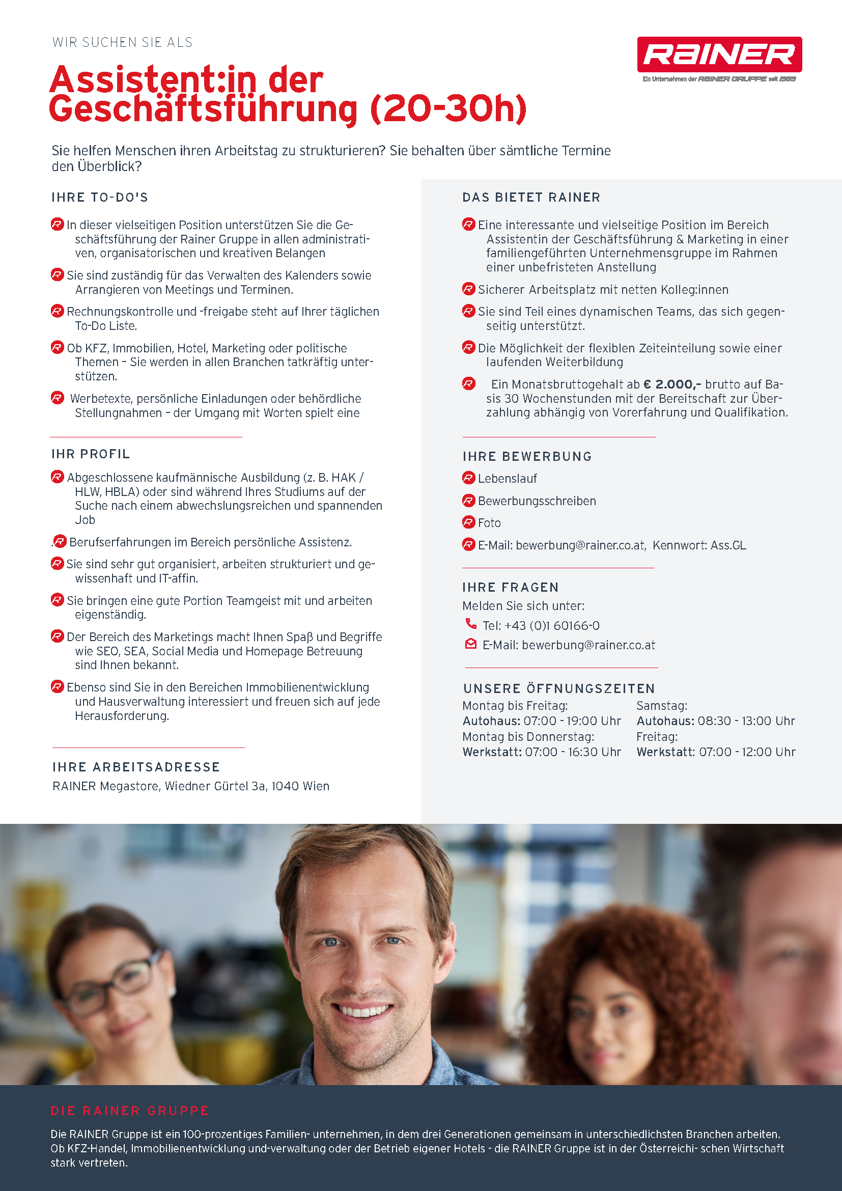 Sie helfen Menschen ihren Arbeitstag zu strukturieren? Sie behalten über sämtliche Termine den Überblick? Dann sind Sie bei uns genau richtig! Wir verstärken unser Team und suchen zum sofortigen Eintritt einen/eine Assisten:in der Geschäftsführung.