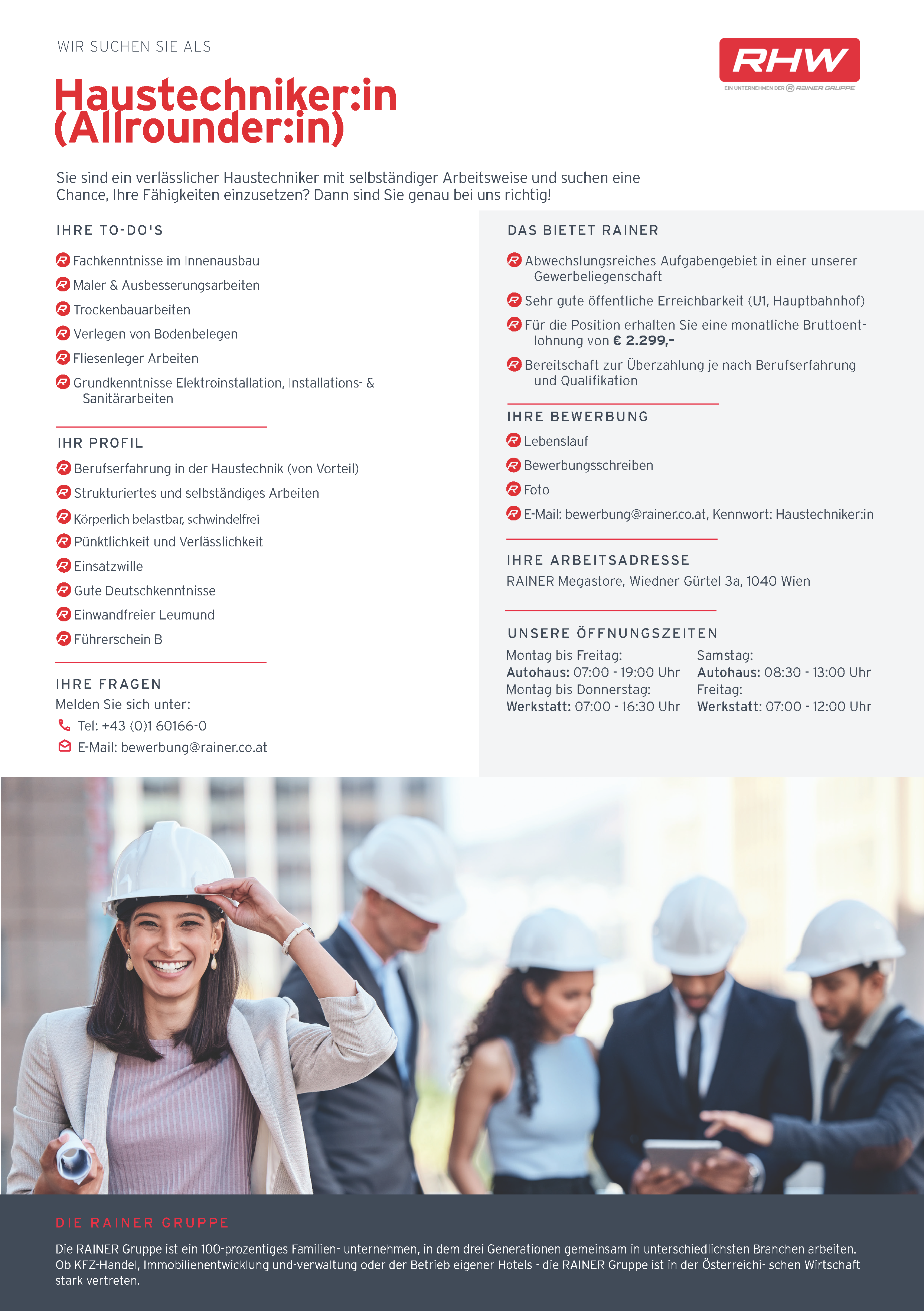 Sie sind ein verlässlicher Haustechniker mit selbständiger Arbeitsweise und suchen eine