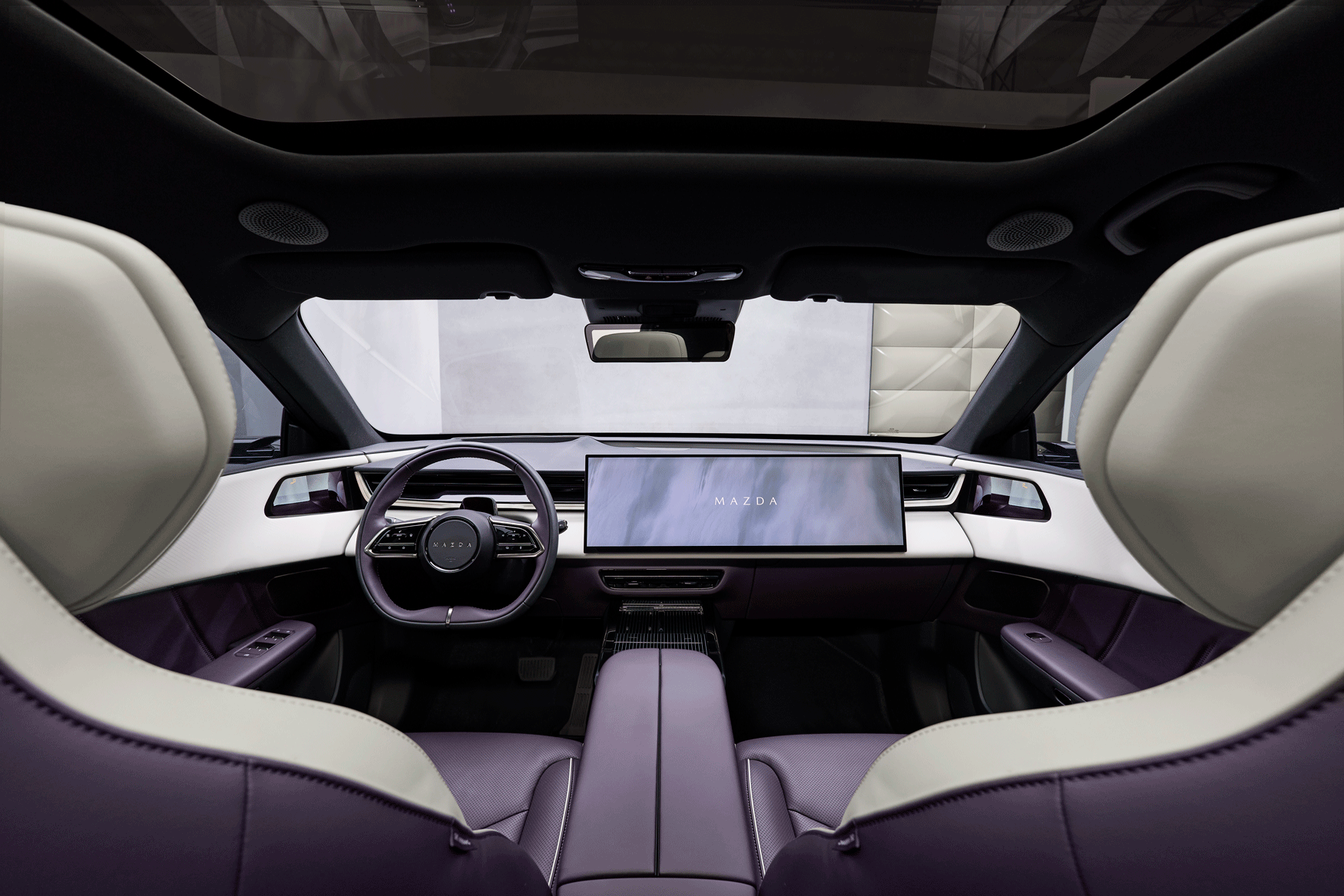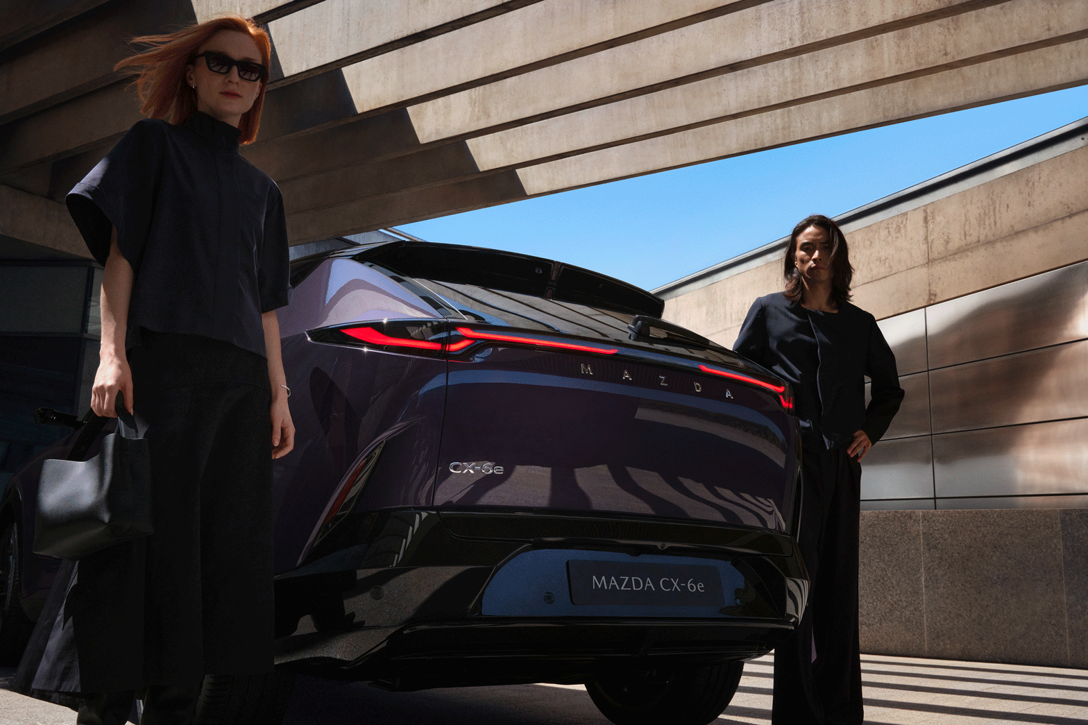 Schon auf den ersten Blick zieht der Mazda CX-6e in seinen Bann. Die weiterentwickelte Designsprache „Kodo – Soul of Motion“ interpretiert Bewegung neu – klar, kraftvoll und zugleich elegant. Schlanke Linien, athletische Proportionen und eine selbstbewusste Präsenz verleihen dem Mazda CX-6e eine futuristische Ausstrahlung, ohne dabei an Wärme oder Charakter zu verlieren. Besonders faszinierend: die neue Lackierung „Nightfall Violet“, die je nach Lichteinfall zwischen schimmerndem Purpur und tiefem Schwarz changiert und dem Fahrzeug eine fast mystische Tiefe verleiht. Ein kontrastierendes schwarzes Dach unterstreicht die dynamische Linienführung und setzt einen modernen Akzent.