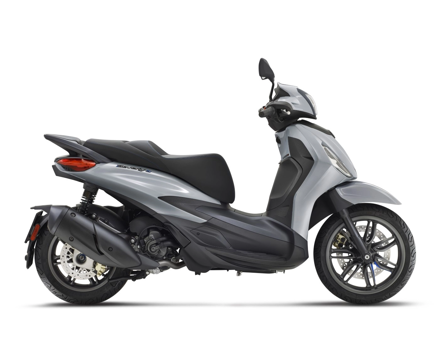 Eine einfache Schwarz-Weiß-Strichzeichnung eines klassischen Rollers.