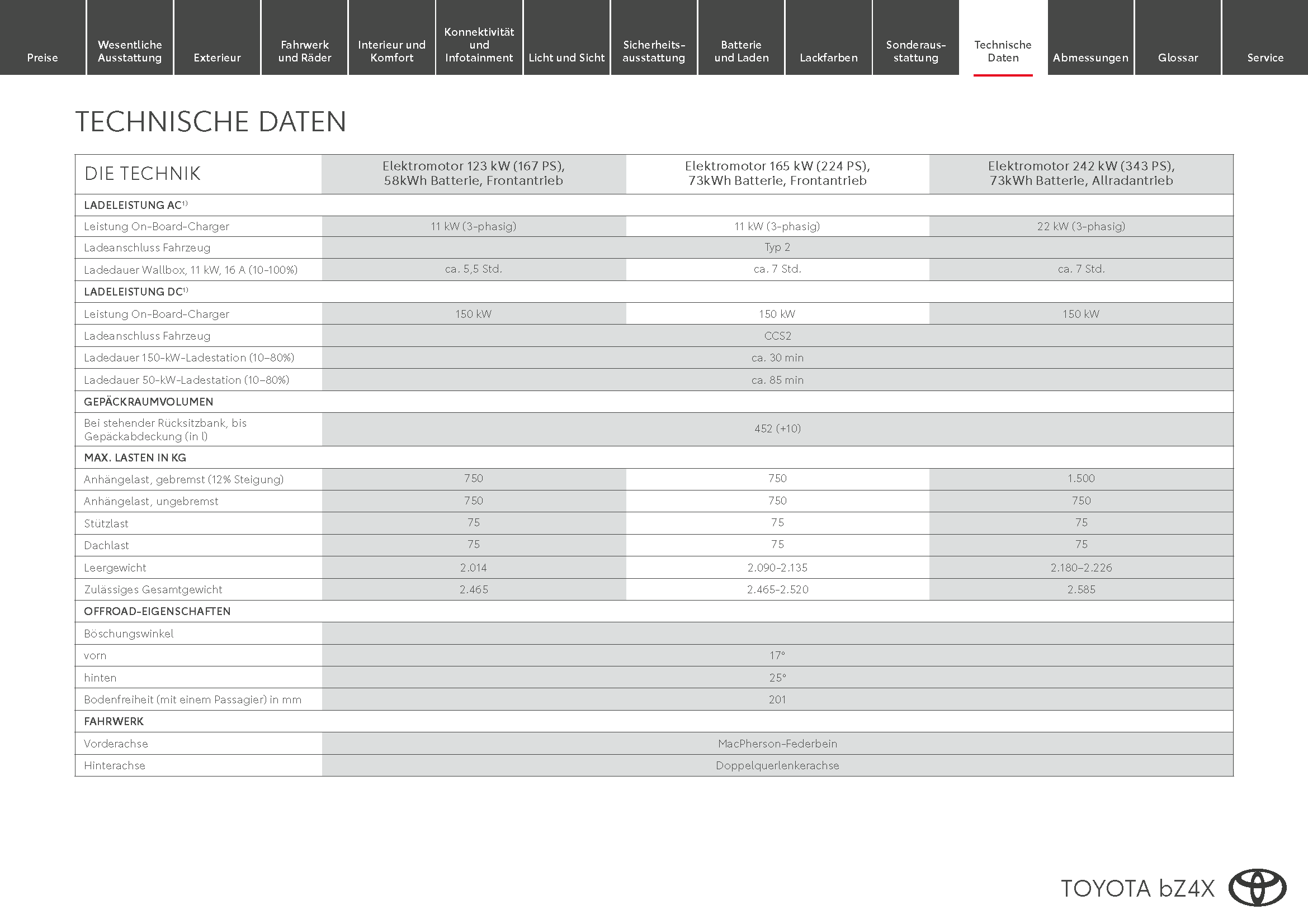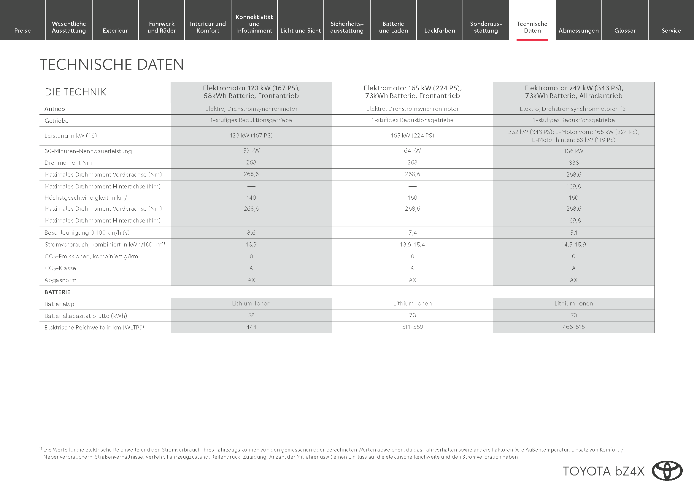 Die technischen Daten des