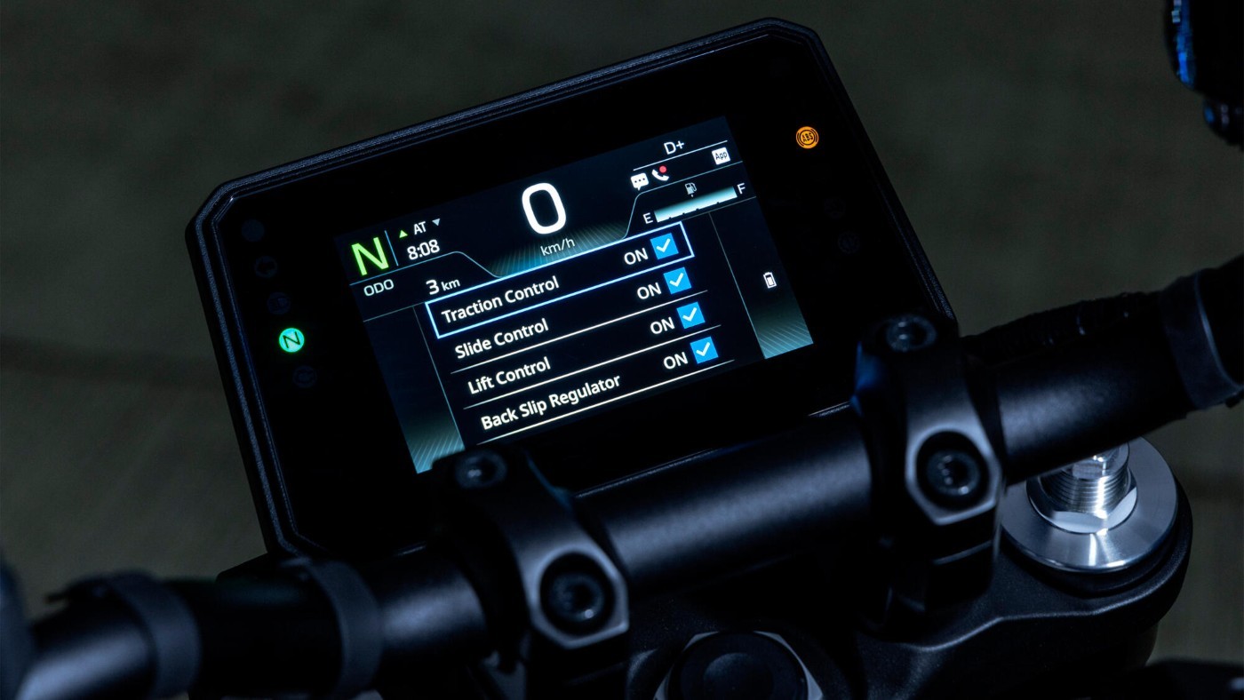 Die kompakte 6-Achsen-IMU, inspiriert von der Yamaha R1, steuert die fortschrittlichen Assistenzsysteme der MT-09. Dazu zählen die dreistufige Traktionskontrolle (TCS), das Slide Control System (SCS), das Lift Control System (LIF) für das Vorderrad sowie das Brake Control System. Ergänzt wird diese Technologie durch den Back Slip Regulator (BSR), der das erzeugte Drehmoment präzise reguliert. So wird verhindert, dass das Hinterrad bei starkem Bremsen blockiert – für mehr Stabilität und Sicherheit in jeder Fahrsituation.