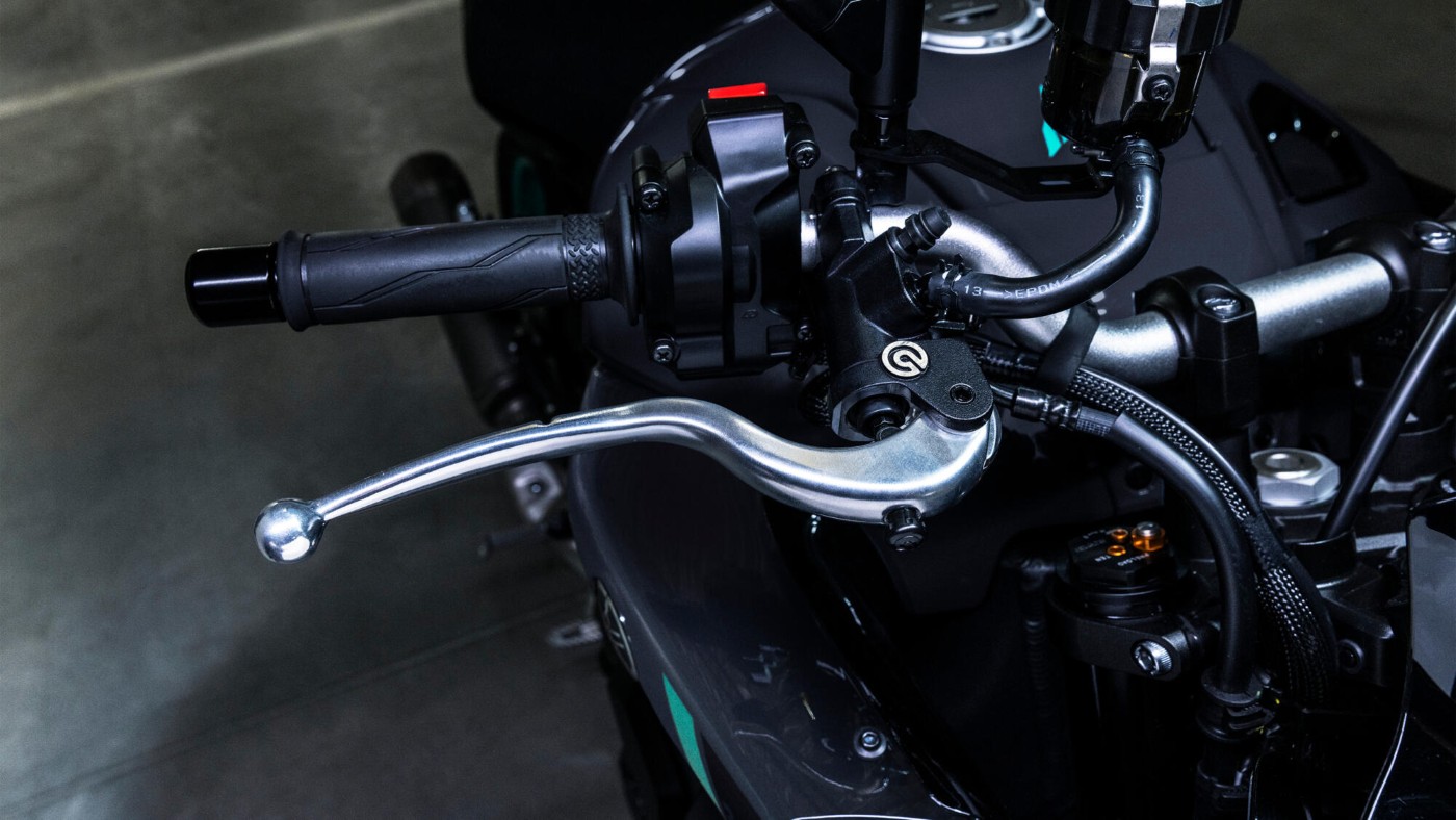 Die MT-10 verfügt über ein Hochleistungs-Bremssystem, das von der R1 inspiriert wurde. An der Vorderseite sorgen zwei schwimmend gelagerte 320-mm-Scheiben zusammen mit radial montierten Bremssätteln mit jeweils vier Kolben für kraftvolles und präzises Bremsen. Zusätzlich ist das Modell mit einem radialen Brembo-Hauptbremszylinder ausgestattet, der eine noch feinere Dosierbarkeit der Bremskraft und maximale Kontrolle über das Bike ermöglicht.