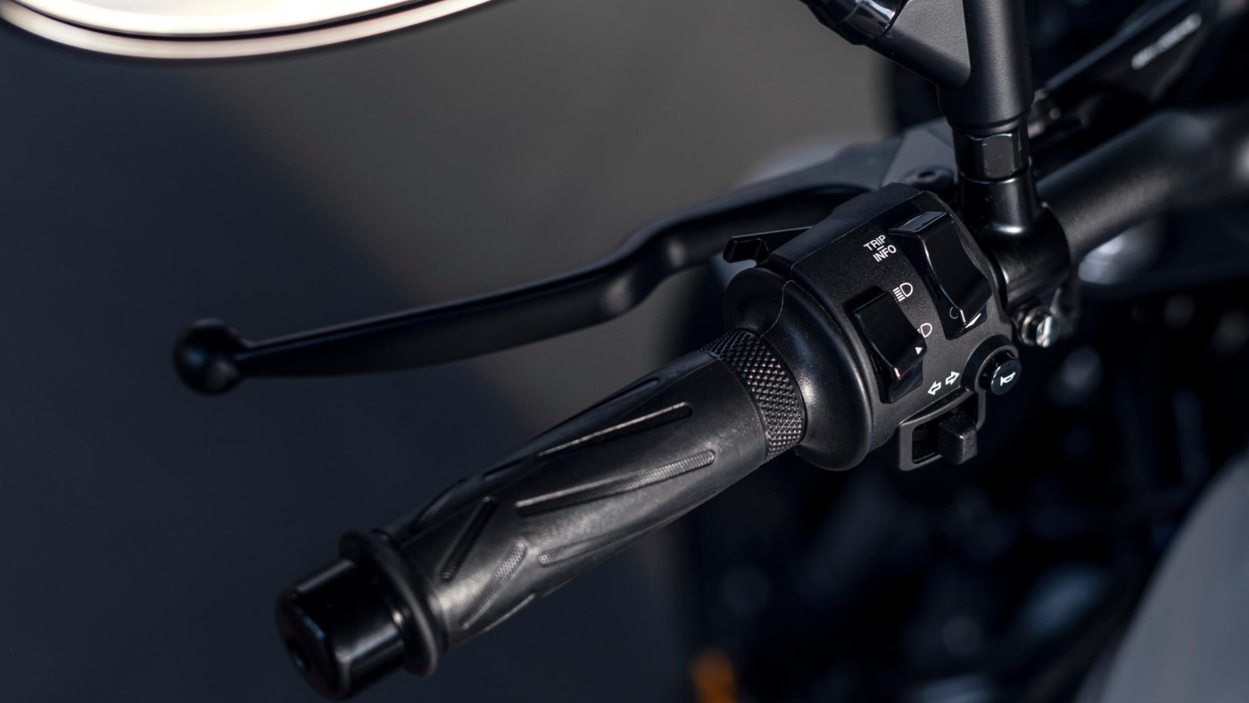 Das ebenfalls im klassischen Stil gehaltene LCD-Display, ausgestattet mit modernen Funktionen, wurde nach vorne verlagert, um die Übersichtlichkeit und Sichtbarkeit zu optimieren. Die Linienführung und Position des Displays wurden auf den neuen Scheinwerfer abgestimmt, was dem Motorrad einen noch dynamischeren "Stupsnasen"-Look verleiht.