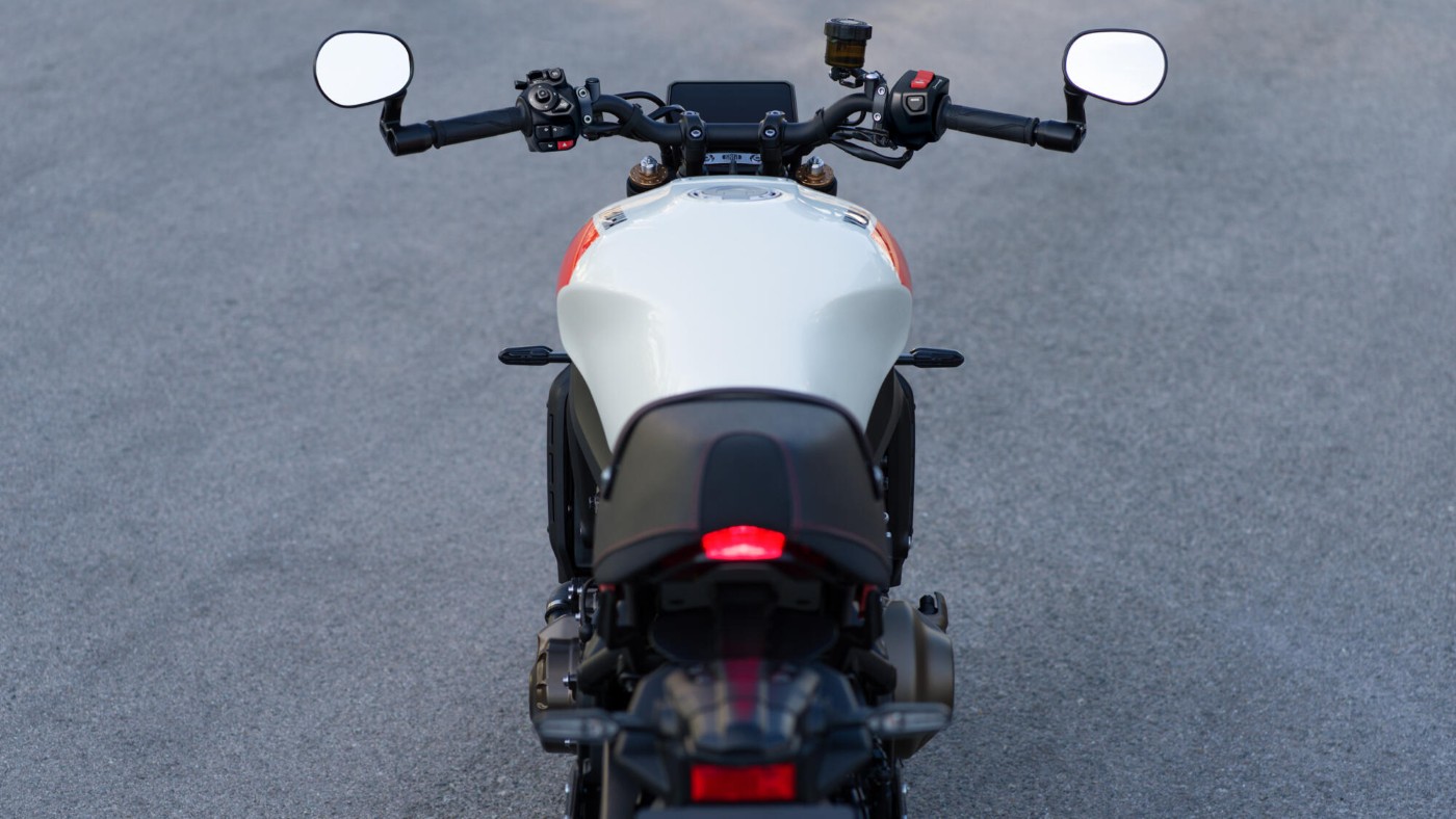 Die Ergonomie der XSR900 passt sich jedem Fahrstil an – egal ob sportlich, entspannt beim Cruisen oder im Stadtverkehr. Der leicht nach hinten versetzte Sitz und der breite Lenker sorgen für das typische Roadster-Feeling: volle Kontrolle, entspannte Fußposition und ein Sitzgefühl, bei dem man mehr „in“ als „auf“ dem Motorrad sitzt. Auch der Sozius genießt komfortables und sicheres Fahren. Gleichzeitig präsentiert sich die Sitzbank schlanker und noch stylischer als zuvor, passend zum sportlichen Heritage-Design.